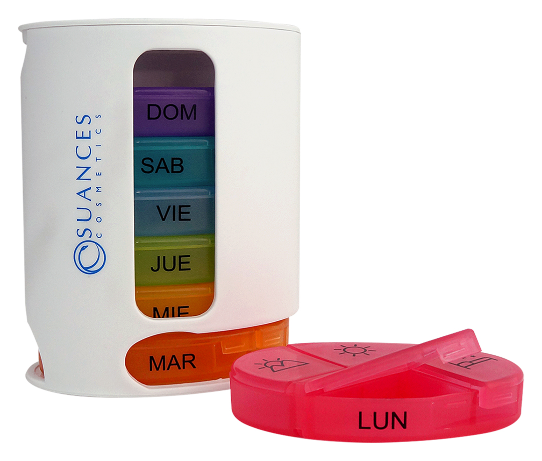 Organizador de medicamentos de 7 colores para mantener un mejor seguimiento de tu medicina 4 veces al día, con marcas de cada momento en la parte delantera que te recordarán qué y cuándo tomar en el día; solo tienes que llenar el pastillero una vez a la semana.